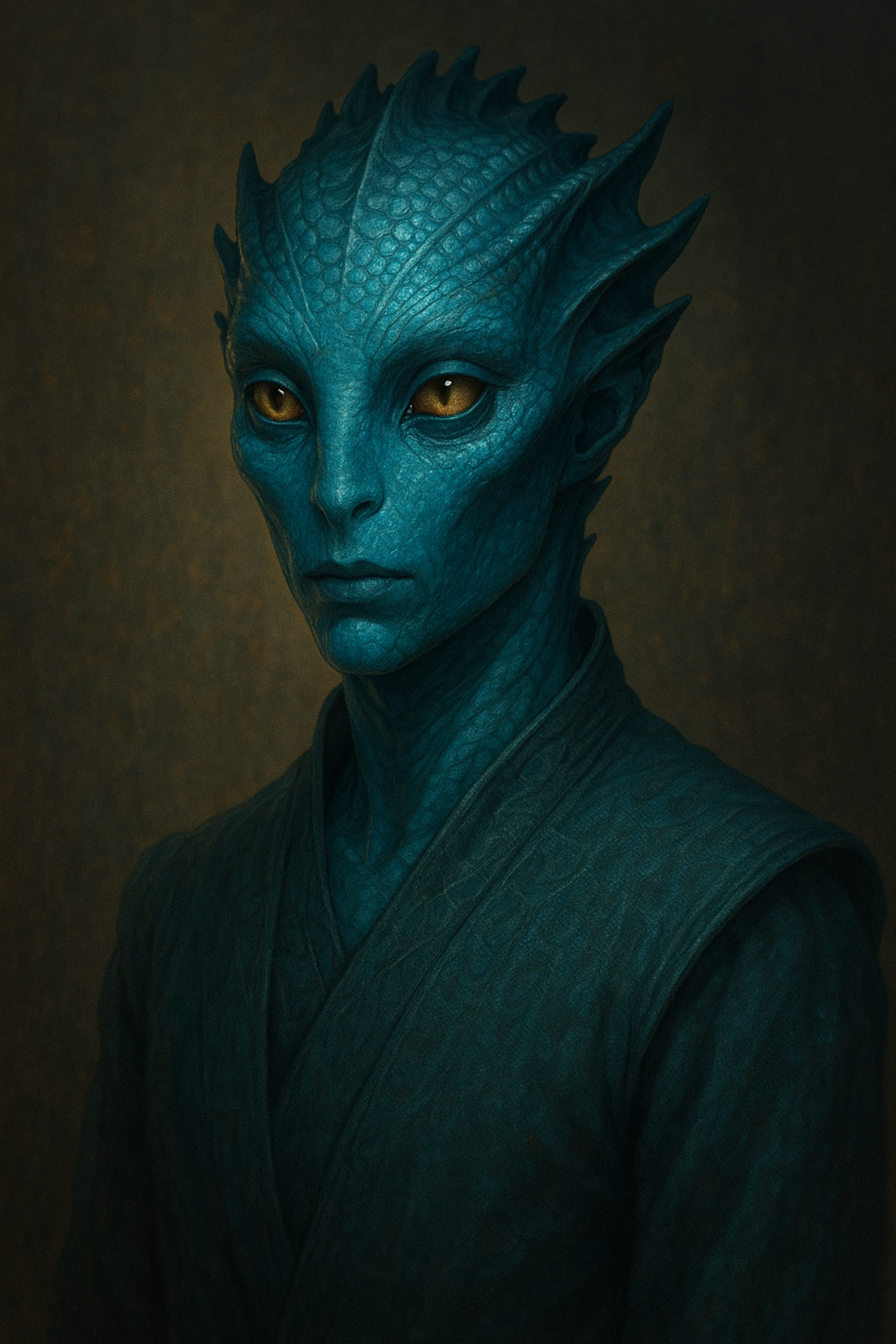 - Aussehen: humanoid, schimmernde Haut in Blau-/Grüntönen, Kiemen, Flossenansätze